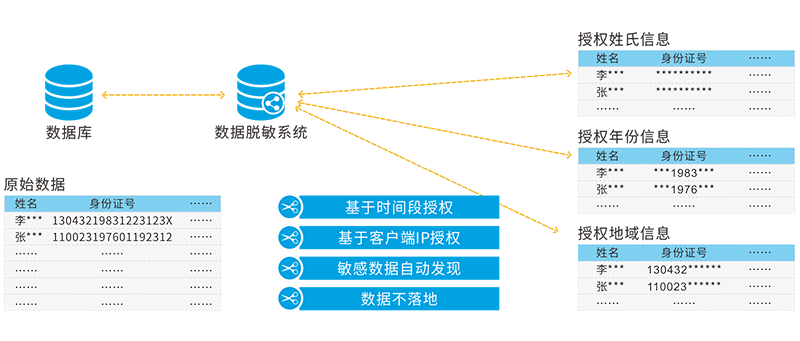 数据脱敏系统可以满足为开发环境、测试环境、培训环境等提供脱敏后的生产数据,也可以为数据交易、数据交换、数据分析等第三方数据应用场景提供适用的敏感信息泄漏防护作用。