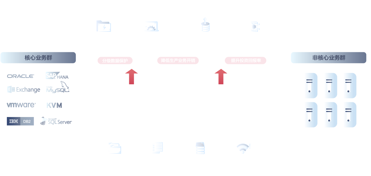 统一数据保护体系:以分级的设计理念,为核心与非核心业务群提供不同级别的灾备技术,打造统一的数据保护体系。