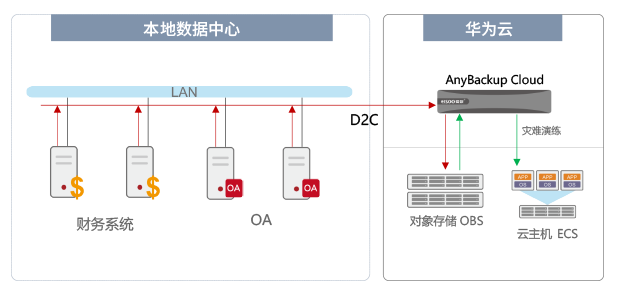 云上和云下均部署备份系统,核心业务数据通过D2D2R技术实现数据复制,冷数据经本地备份后,再复制至对象存储中。