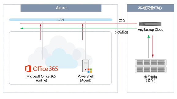 某酒店是四星级酒店,交通便利快捷,是该区域的商业、购物及娱乐中心。核心业务系统即邮件系统(基于Office 365构建)位于公有云上,因业务连续性非常重要,期望将数据备份到本地,当云上发生故障时,可通过本地直接恢复邮件。